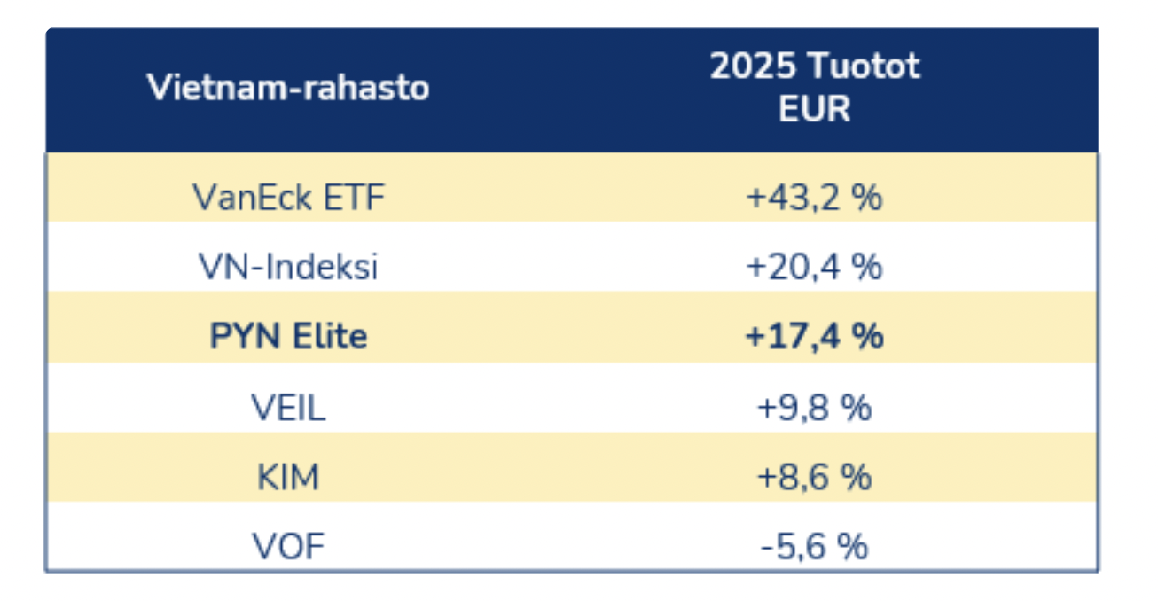 Tuy nhiên, ba tháng cuối năm lại chứng kiến sự điều chỉnh trên diện rộng của thị trường chứng khoán Việt Nam, ảnh hưởng nặng nề đến phần lớn cổ phiếu ngân hàng và tài chính – nhóm chiếm tỷ trọng lớn trong danh mục của quỹ. Trái lại, cổ phiếu VIC tiếp tục leo dốc mạnh, khiến mức sinh lời chung của PYN Elite trong cả năm bị kéo xuống đáng kể so với diễn biến của chỉ số.